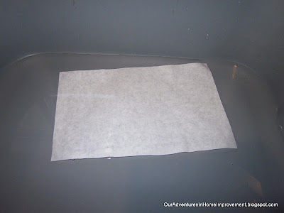 After it's completely dry, set the paper in a bowl of water.  (I use a Dollar Store dish bucket)